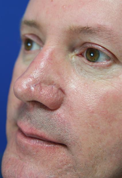 Secondary deformities after nose surgery frequently require more complex reconstruction then initial nose surgery. This patient had rhinoplasty (nose shaping surgery) done 10 years ago elsewhere. This left him with an unattractive scar and deformity of the tip and left side of the nose. He came to our plastic surgery office in Fort Lauderdale for consultation and eventual correction of the nose deformity.