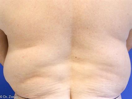 Patient is shown before first stage of body contouring surgery after massive weight loss (left) and 3 years after body contouring which included circumferential body lift, scar revisions, tummy tuck and 2 stages of aggressive liposculpting (liposuction, suction assisted lipectomy) of back and flanks (right). Notice barely visible scar above underwear which can be easily hidden with any type of underwear and improvement of lower and upper back and flanks.
