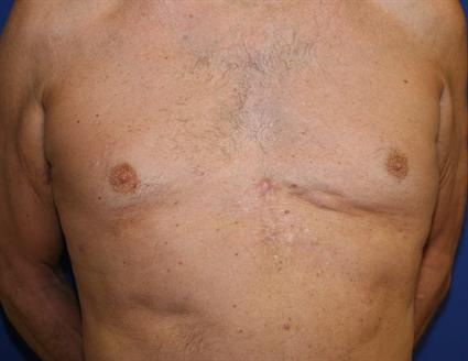 A 52-year-old plastic surgery patient from South Florida came to our Fort Lauderdale plastic surgery center for a consultation regarding birth related chest deformity. He had this deformity reconstructed with a silicone custom made implant but due to location and mobility of the chest wall silicone implant failed.