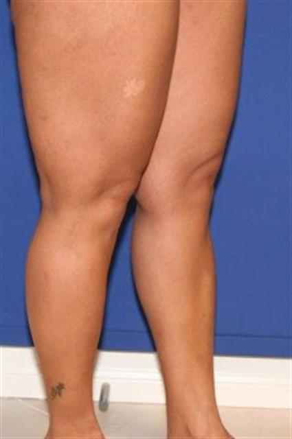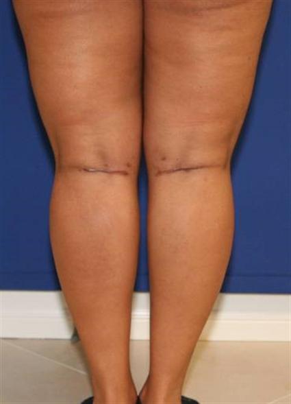 Surgery was done in our office based surgery center in Fort Lauderdale, in general anesthesia. Soft silicone rubber calf implants were placed through small incisions in the knee creases. Postoperative course was uneventful. Patient was encouraged to walk with a walker for 2 days.