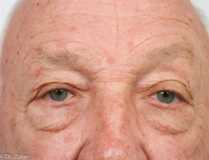 On clinical examination he demonstrated significant redundancy of the upper eyelid skin and heavy bags underneath lower eyelids, a typical presentation for his age (left).