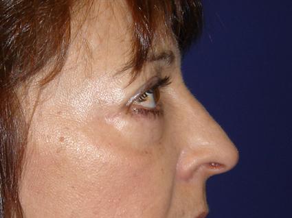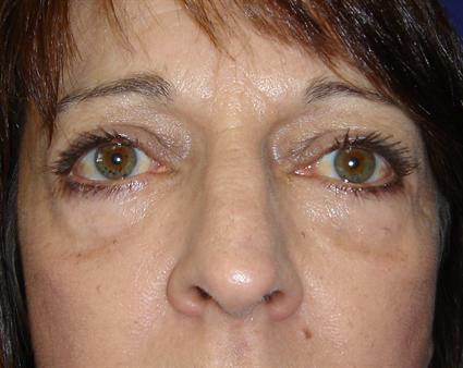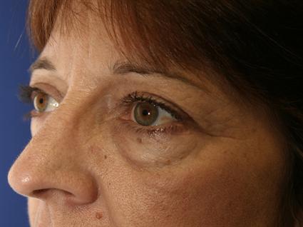 Our clinical evaluation demonstrated weak cheek bones (malar hypoplasia), heavy bags underneath lower eyelids with deep “tear trough” groove separating cheeks from lower eyelids. She also had moderated skin redundancy and hooding of upper eyelids (left).