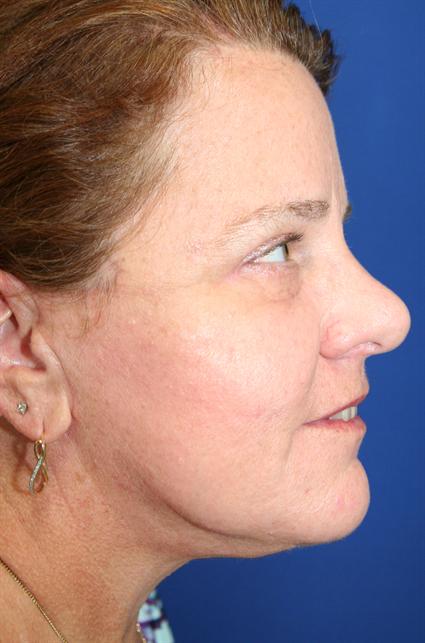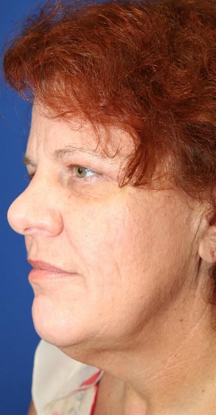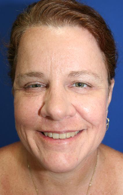 This 53-year-old Boca Raton cosmetic surgery patient underwent a face and neck lift, upper and lower blepharoplasty, fat grafting to the face, around the eyes and brows. She also had a chemical TCA peel to address severe discoloration and sun damage of the skin.