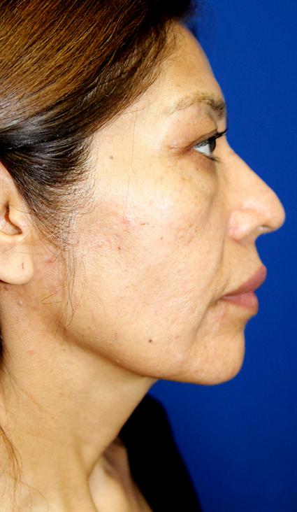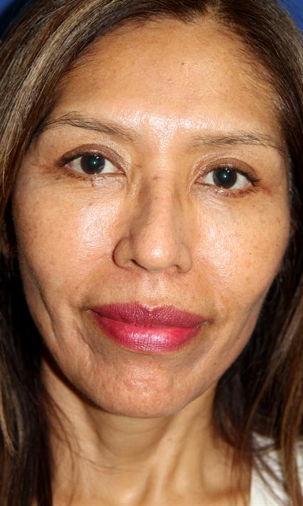 A 49-year-old cosmetic patient from Fort Lauderdale came to our plastic surgery practice for consultation about facial rejuvenation. She was concerned about hollowness around eyes, flat, droopy cheeks, skin folds on upper eyelids, small jowls and early signs of skin laxity in the neck.