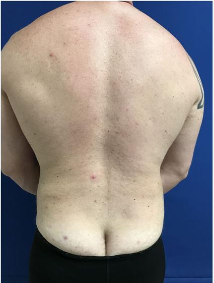 This patient is shown before body contouring surgery and 3 months after liposuction of back and flanks. total of 3 litters of fat was removed from these areas.