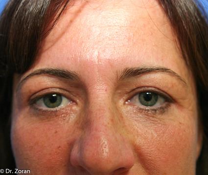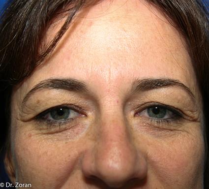 A 48 years old Palm Beach plastic surgery patient came to our cosmetic surgery center in Fort Lauderdale requesting rejuvenation of upper eyelids. She always had a full and prominent upper eyelids and brows which was considered attractive by most of her friends. However, few years ago she noticed a heavy skin fold and droopiness of eyelids which she considers unattractive. It gives her “a tired angry look” (left).